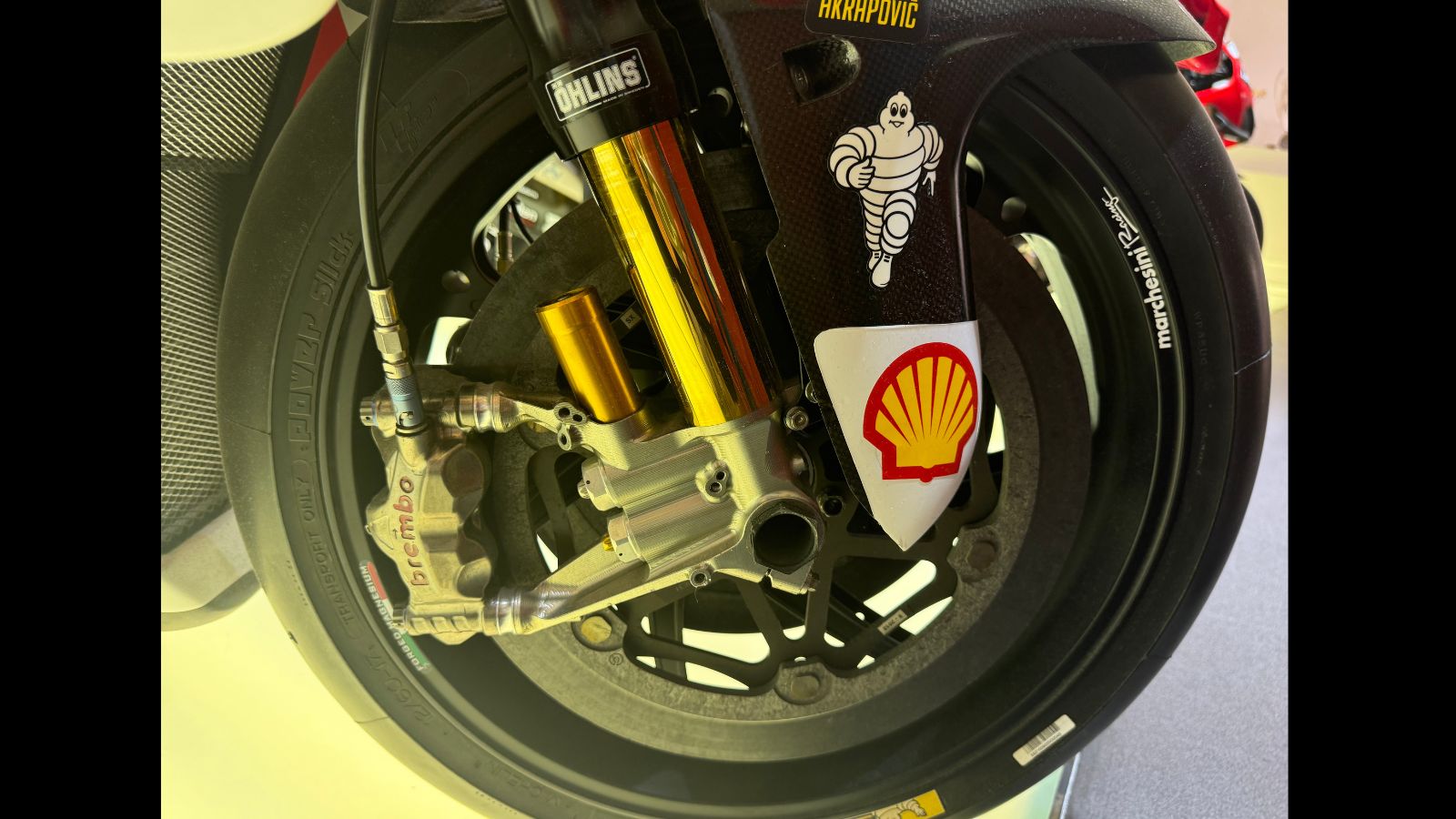Dealership superbikes, while equipped with advanced suspension systems like Ohlins or Showa, can’t match the customizability of a MotoGP prototype. Their chassis is designed to handle a variety of conditions—from the daily commute, carrying a pillion, canyon carving to track days—making them versatile but not as specialized.  Also not to mention operating in all weather conditions and temperature ranges from Texas desert heat to a London winter cold.